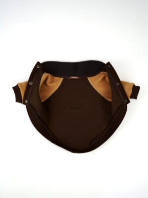 Бомбер має фірмовий вивід під шлею. Спеціально оброблені пласкі та закриті шви всередині, що допомагає уникнути збиття шерсті вашого улюбленця в ковтуни.