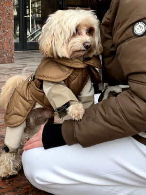Комбінезон з флісу з захищеними плащовою тканиною манжетами на лапках, який може використовуватись як окремо, так і в комплекті з попною, що забезпечує комфорт та тепло взимку та проходну осінь. Регулювання по манжетах на лапках.