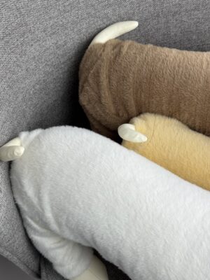 Для коректних замірів потрібно поставити песика на 4 лапки та використовуючи метр чи лінійку заміряти довжину від середини шийки до хвостика.