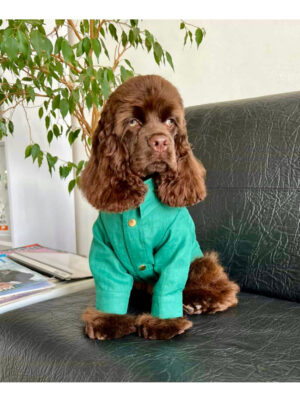 Вивід під шлею, прихований нашою фірмовою кокеткою дозволить не нехтувати комфортом та безпекою пухнастого. Доповнюють та прикрашають сорочку надійні кнопки золотого кольору з нержавіючого матеріалу.