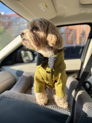 Вивід під шлею, прихований нашою фірмовою кокеткою дозволить не нехтувати комфортом та безпекою пухнастого. Доповнюють та прикрашають сорочку надійні кнопки золотого кольору з нержавіючого матеріалу.