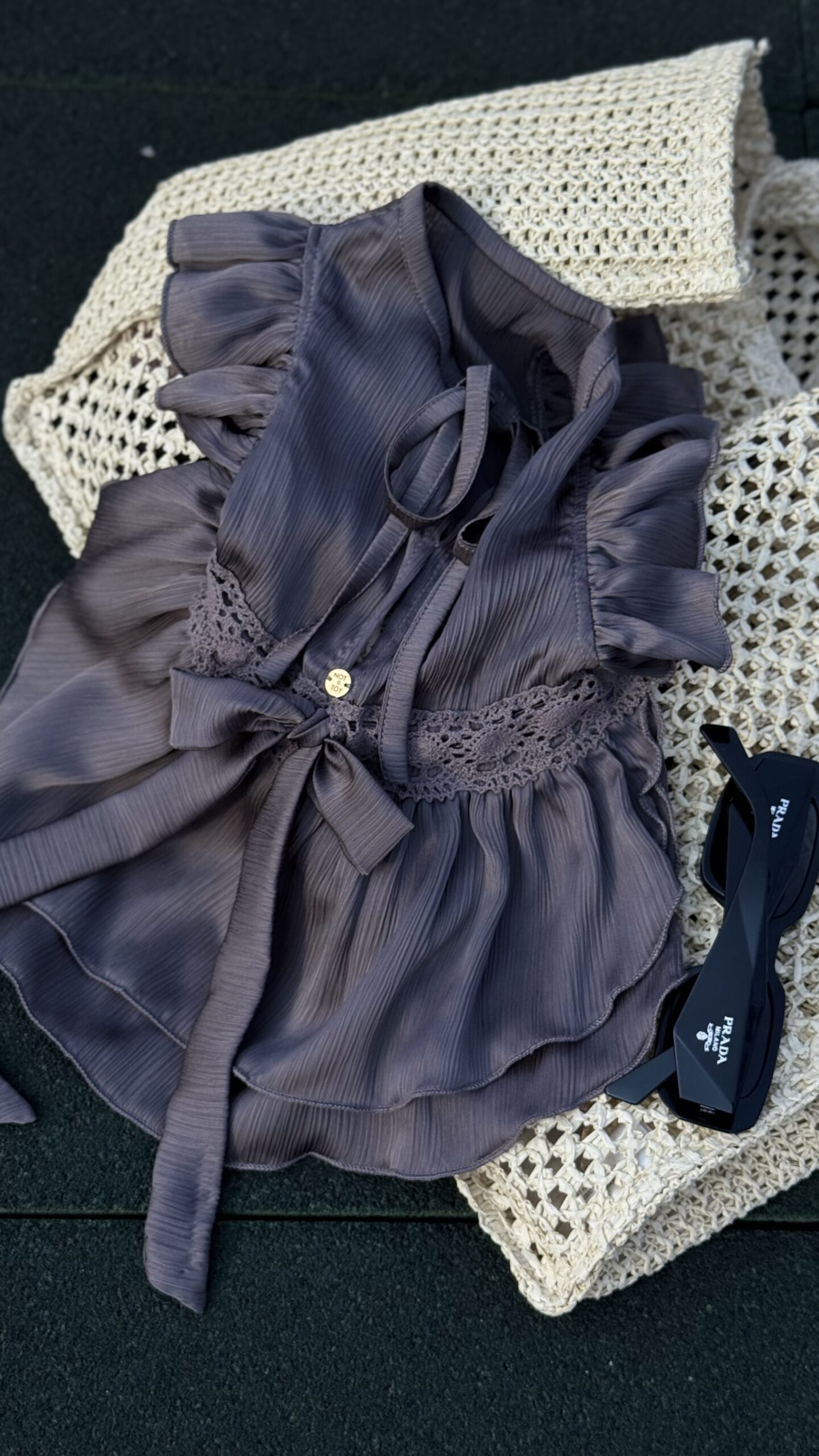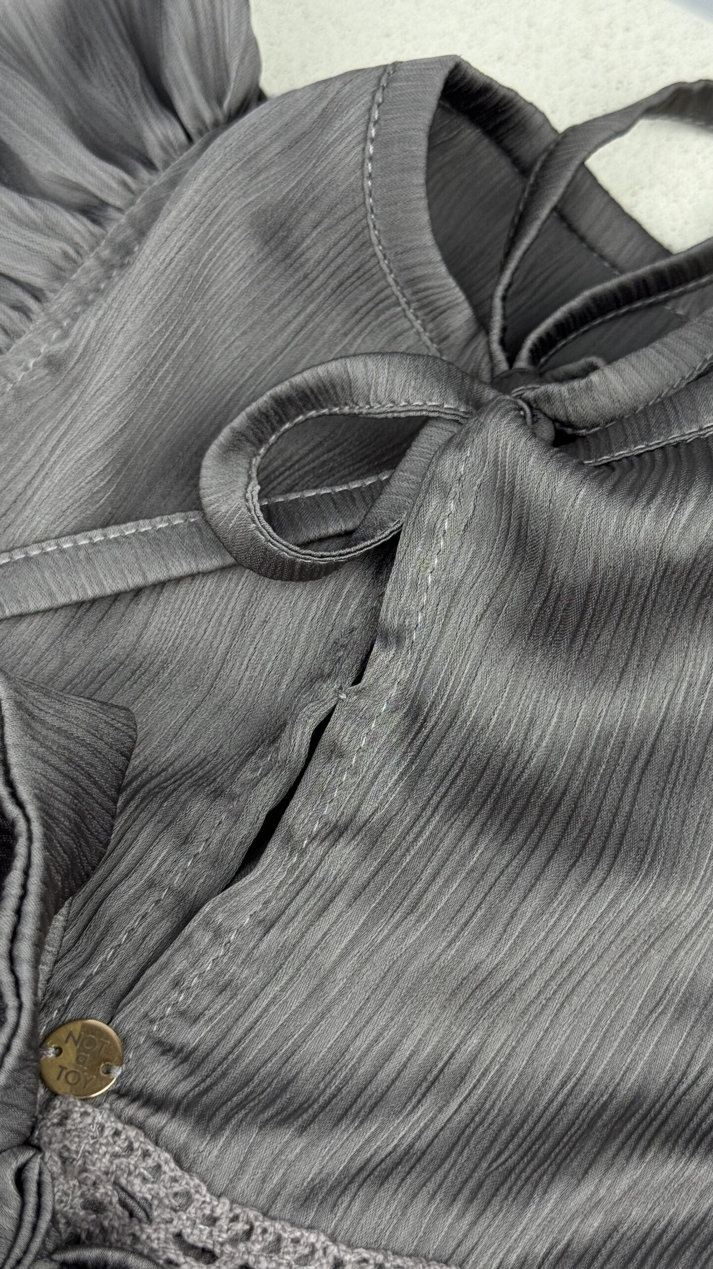 Сукня від NOT A TOY виконана з напівпрозорої тканини, яка немов вуаль легка та елеганта, а мереживо додає вишуканості та підкреслює лініі.